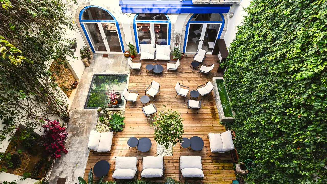 No fim de uma pequena travessa da Rua da Boavista, no coração da Lisboa antiga, abre‑se uma porta que seca o barulho da cidade e conduz a um speakeasy de vinhos com um jardim secreto contíguo. O Alma54 funciona como bar e jardim privado, apresentando‑se em dois registos: um interior intimista, com lareira que se acende nas noites mais frias, e um espaço exterior cuidadosamente recuperado, onde é possível passar o fim de tarde e boa parte da noite ao ar livre.