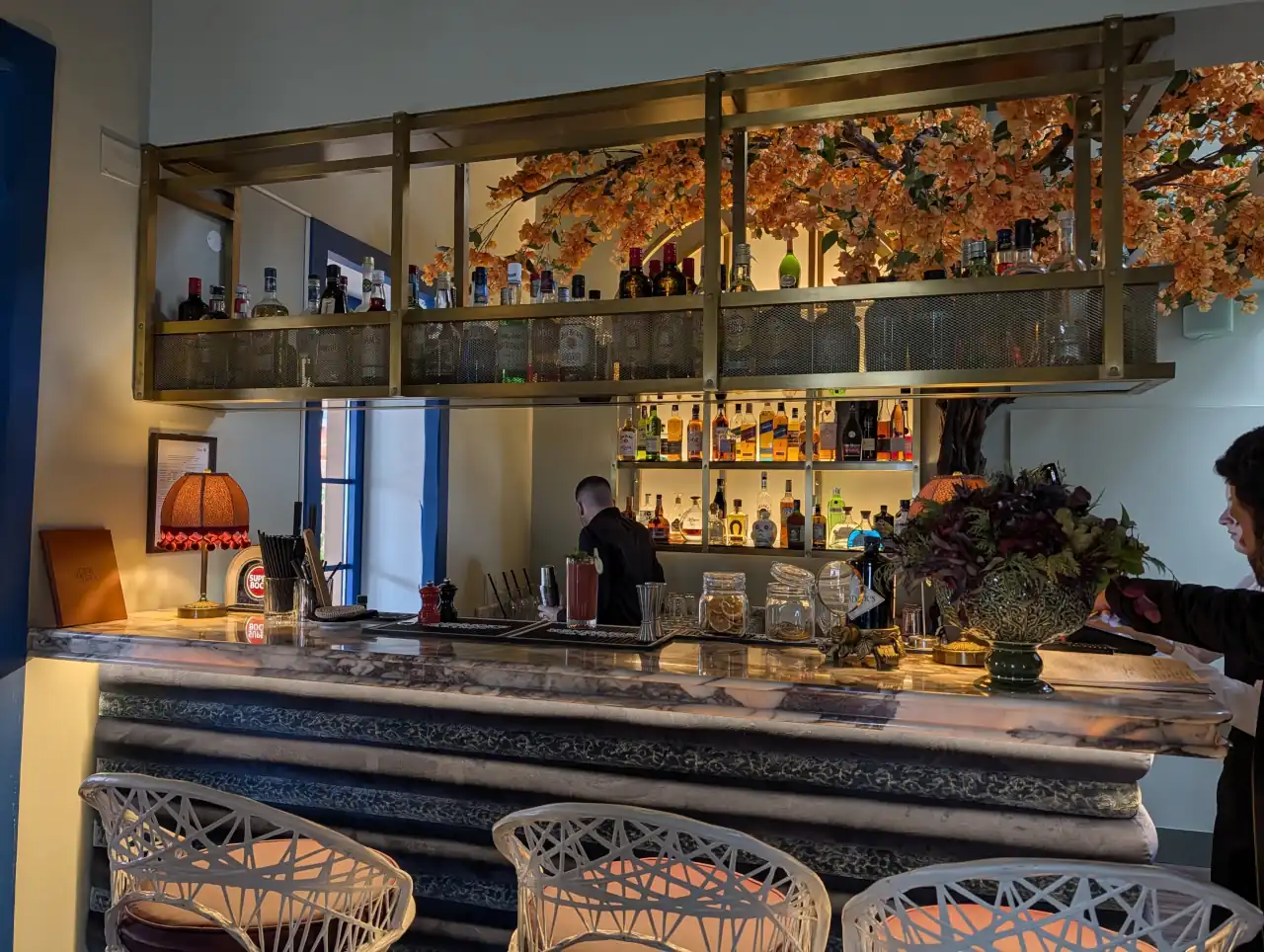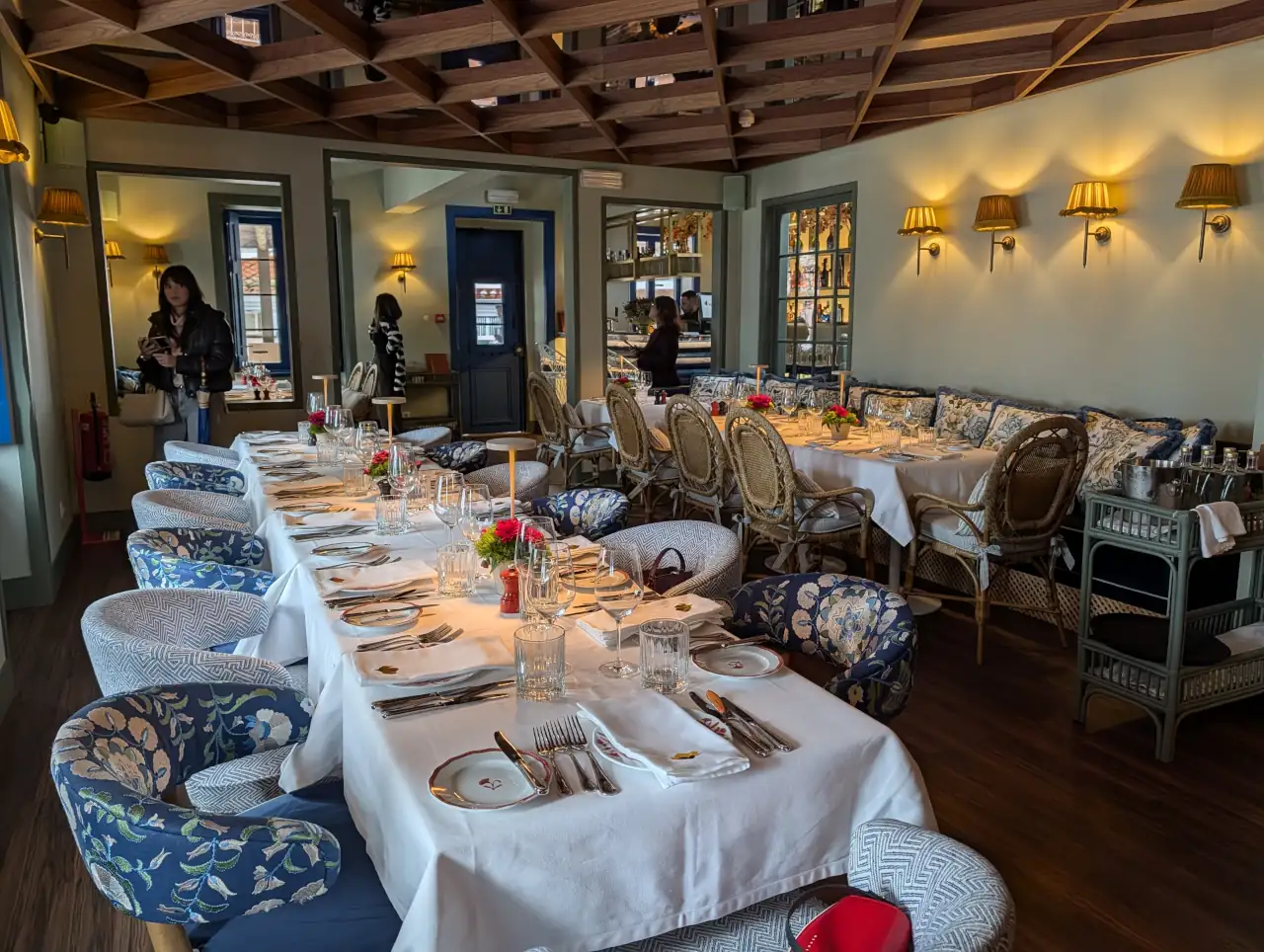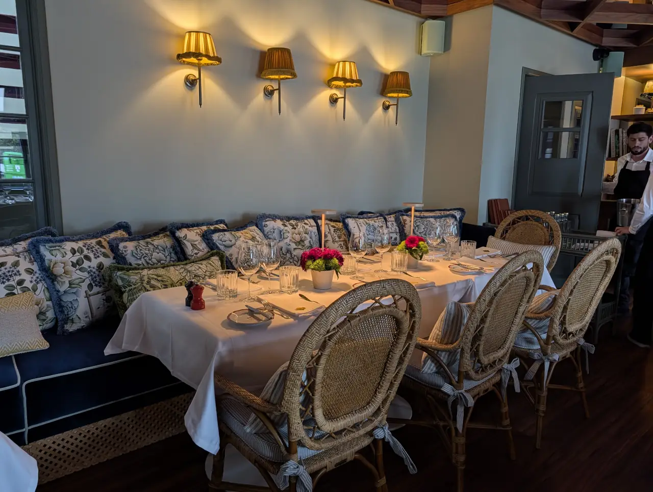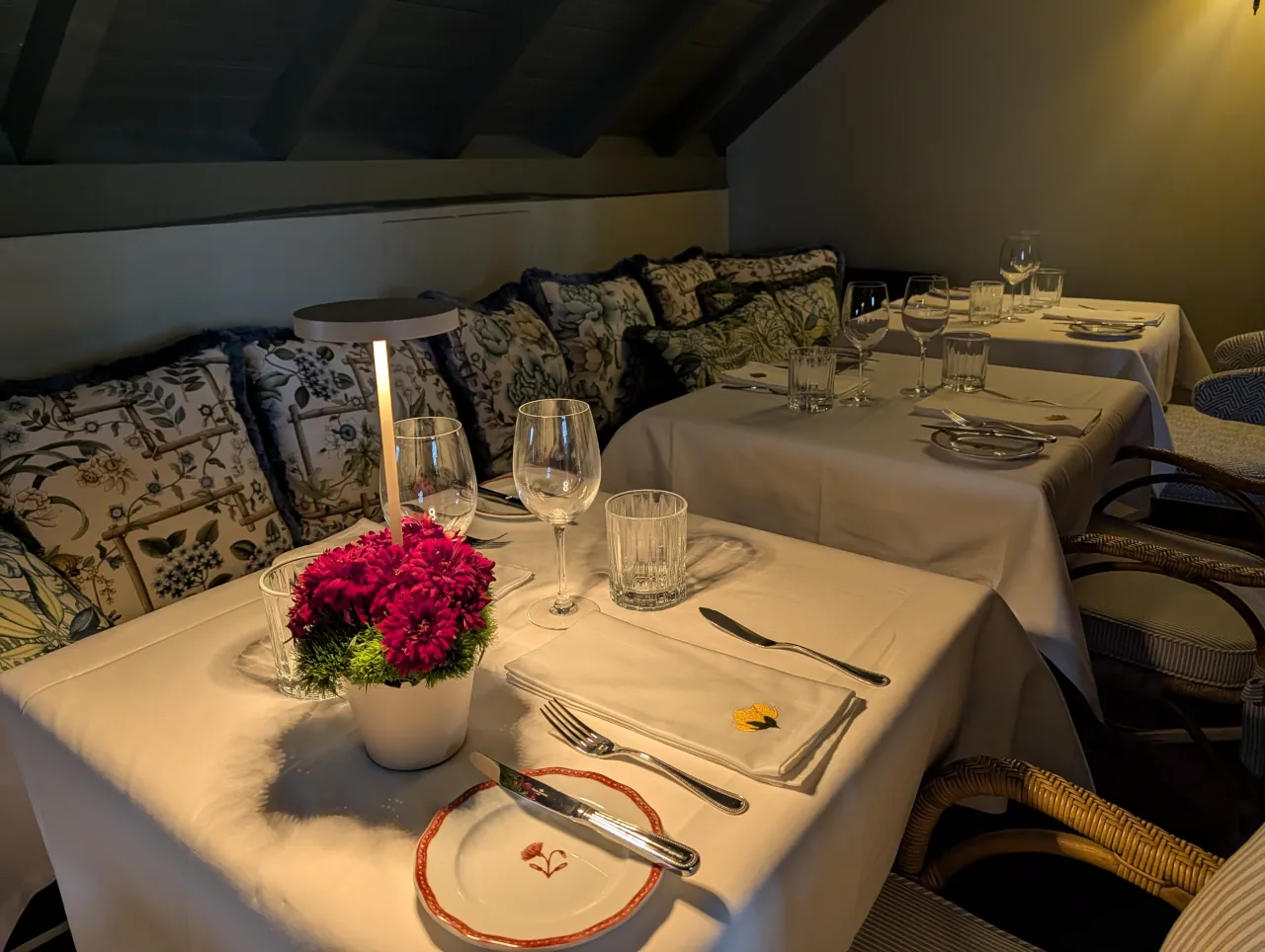 Esta alteração permitiu transformar a dinâmica do restaurante, duplicando a capacidade de 48 para cerca de 96 lugares nos meses de verão. O projeto de interiores, assinado em colaboração com a designer Rita Valadão, trouxe para o espaço a luz de Cascais, apostando em madeiras, tons quentes e uma lareira que domina a sala principal. A antiga zona de jogo, na mezzanine, deu lugar a um espaço mais intimista, vocacionado para jantares privados onde a privacidade é prioritária.