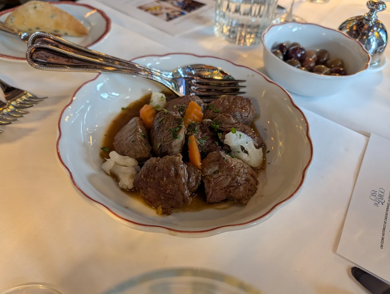 À mesa, a filosofia da Casa do Largo é uma declaração de intenções contra o excesso de processamento. “A ideia foi não inventar muito. A carne é carne, o peixe é peixe”, resume a proprietária. A aposta recai sobre a qualidade absoluta da matéria-prima, trabalhada numa cozinha de conforto portuguesa com apontamentos mediterrânicos.