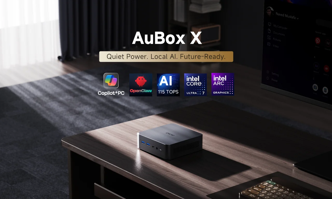 A CHUWI anunciou o AuBox X, um mini PC com dimensões reduzidas com processadores Intel Core Ultra (Série 2), baseados na arquitetura Lunar Lake. O equipamento foi desenvolvido para executar tarefas de inteligência artificial diretamente no próprio sistema.