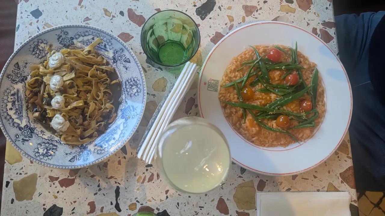 A carta do Cose di Mamma ostenta um bom equilíbrio entre acessibilidade e sofisticação. O menu de almoço, disponível de segunda a sexta-feira por uns muito competitivos 13,50€, inclui clássicos como a Pasta Pomodoro com Mozzarella de Búfala, Risotto de Abóbora com Chèvre e Guanciale, ou as pizzas Margherita e Diavola.