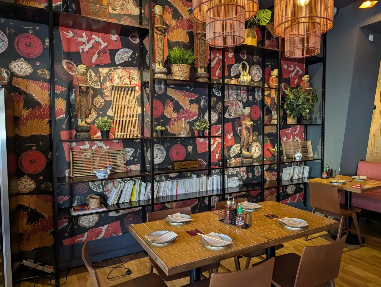 O ambiente reflete a diversidade da cozinha pan-asiática: moderno, descontraído e multicultural. Grandes janelas deixam entrar luz natural, criando um cenário acolhedor, enquanto o serviço mantém atenção aos detalhes, pronto a esclarecer dúvidas ou sugerir combinações. Apesar de se encontrar a milhares de quilómetros da Ásia, o restaurante garante uma experiência gastronómica rápida sem comprometer a qualidade.