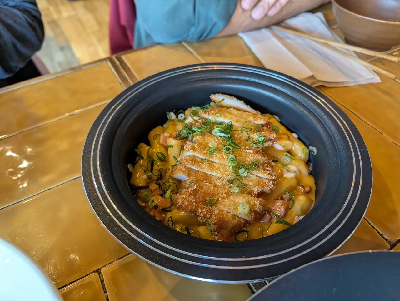 Já o Topokki transporta-nos para a Coreia, com rolinhos de arroz coreanos recheados com bacon, envolvidos em molho cremoso de gochujang e queijo mozzarella, servidos com katsu de frango – no fundo, tiras de frango fritas no topo do prato. Aqui tudo funciona, desde o sabor realçado do bacon ao queijo derretido e o molho cremoso, pelo que vai certamente conquistar nos dias frios. A textura da massa de arroz é que é algo elástica, mas, ainda assim, não se torna “irritante” de comer.