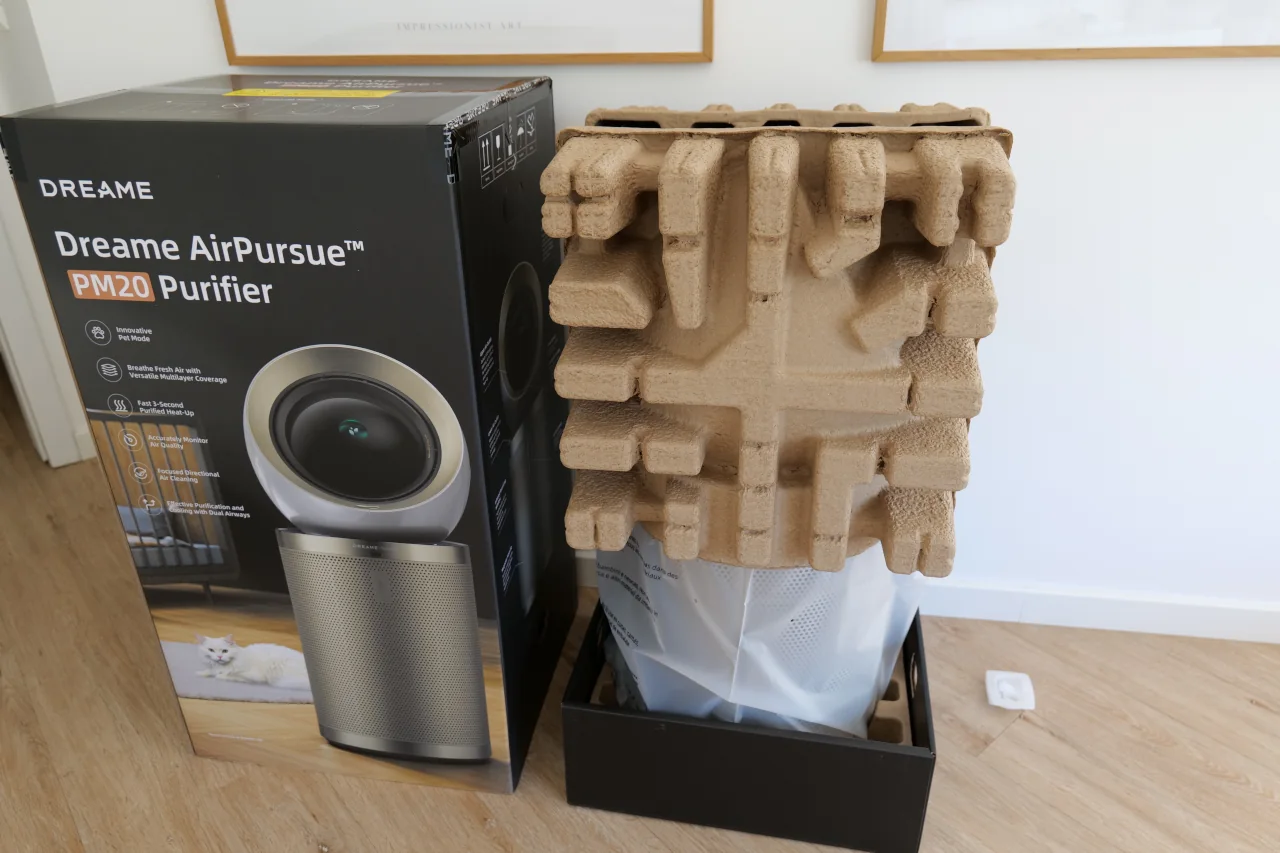 Também a sua qualidade de construção demonstra solidez. Nota-se que é um equipamento bem pensado, estável e feito com materiais robustos, o que me deixa bastante tranquila quando preciso de transportá-lo de uma divisão para outra. O acesso aos filtros é muito fácil e a unidade chega praticamente pronta a funcionar: basta ligar à corrente e fazer a configuração inicial na aplicação da própria Dreame, e o PM20 está pronto para começar a trabalhar.