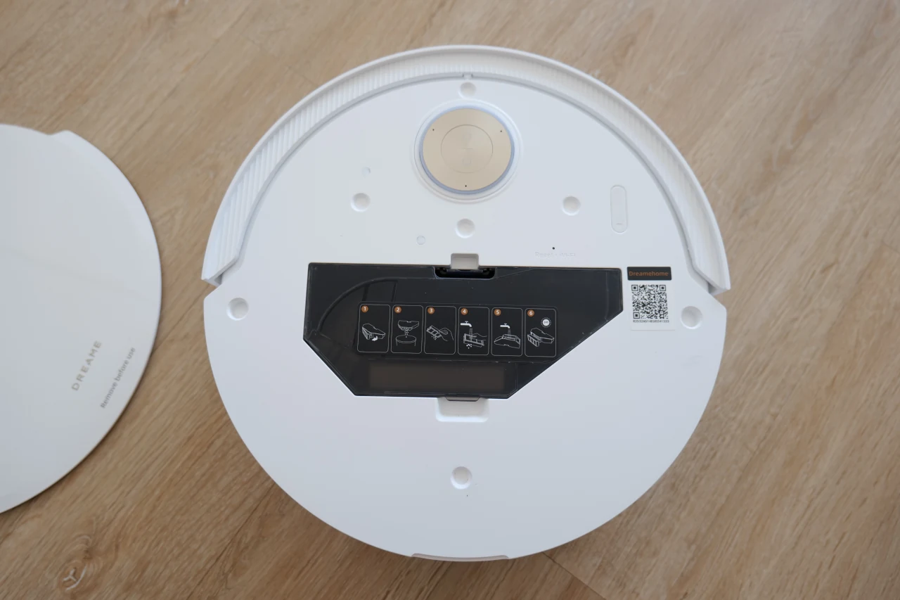 É também no LiDAR retrátil que também temos dois botões físicos: o Home, que envia o Dreame X50 Ultra de volta à estação, e o On/Off, responsável por ligar ou desligar o equipamento. Ao remover a tampa superior do robô, podemos ainda encontrar o depósito do pó, facilmente acessível para limpeza seguindo as instruções da marca. Costumo fazê-lo a cada dois meses, um intervalo que considero ideal para garantir que o sistema mantém sempre o mesmo nível de desempenho.
