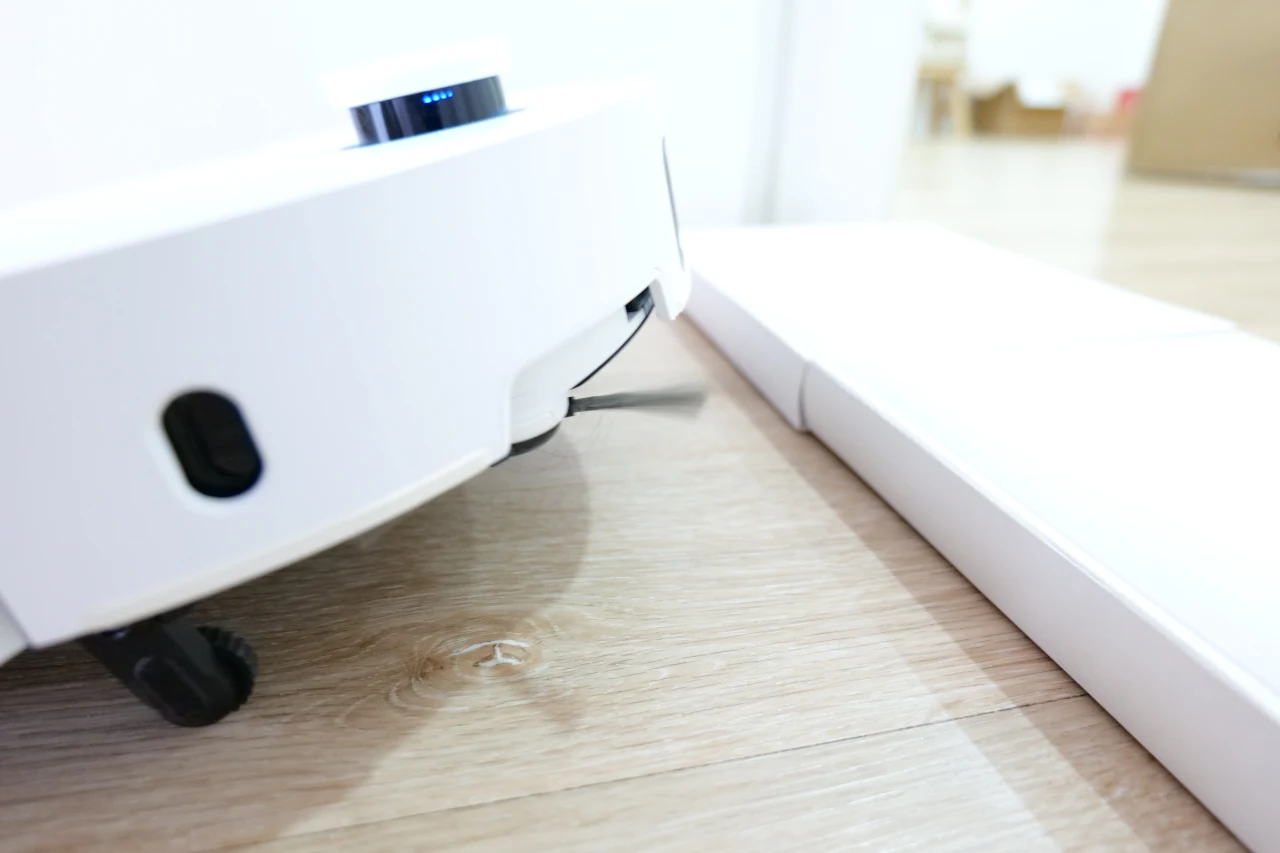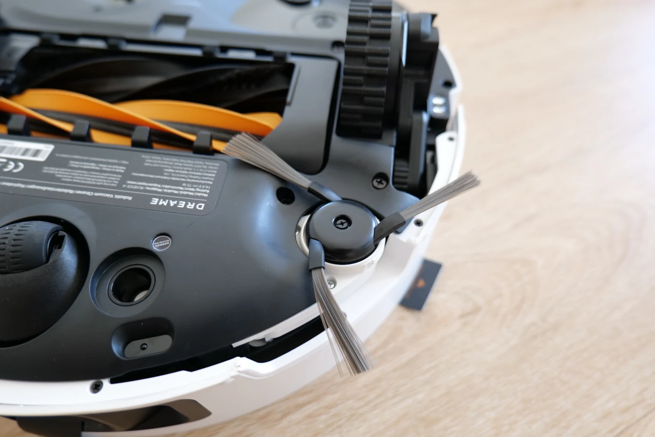 Existe ainda uma escova lateral flexível, equipada com um braço extensível que faz toda a diferença na qualidade da limpeza. Este braço consegue estender-se para alcançar cantos e zonas de difícil acesso, garantindo que o robô limpa junto às paredes e nos limites dos móveis com muito mais eficácia. Além disso, o sistema é inteligente o suficiente para detetar líquidos no chão: quando isso acontece, a escova eleva-se automaticamente, evitando salpicos e aquela acumulação pegajosa que facilmente se forma nesses casos.