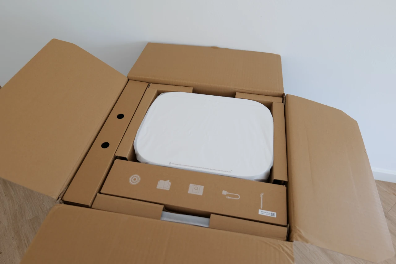 Como a estação de limpeza automática é algo volumosa (com 59 cm de altura, 34 cm de largura e 45,7 cm de profundidade), é importante pensar bem onde a colocar, já que acaba por ocupar um pouco mais de espaço que a maioria das bases de aspiradores. Mas o tamanho justifica-se: esta não é apenas uma base de carregamento; antes uma verdadeira estação de limpeza totalmente equipada.