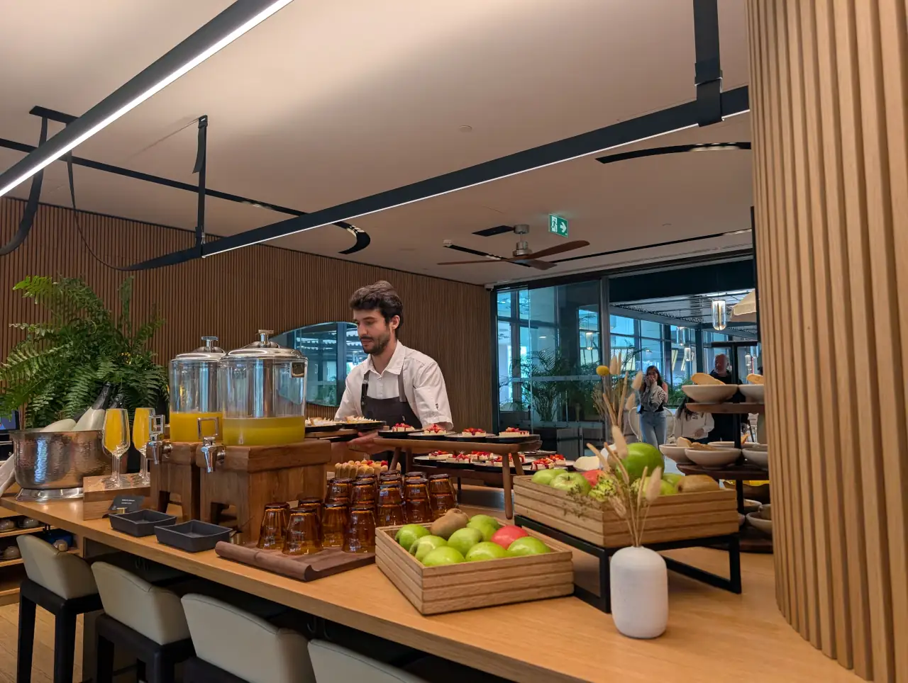 A ideia é proporcionar aos clientes, com foco especial nos visitantes locais e não apenas os guests do Hotel, mais do que um buffet: um brunch que seja uma junção de pequeno-almoço e almoço, com tudo o que é característico de ambos. Pode ser uma surpresa para alguns, mas trata-se de um conceito emergente que a ganhar cada vez mais adeptos. De facto, o EVO Brunch foi pensado para ser uma experiência interativa e personalizada. O que significa? Os hóspedes são convidados a circular livremente pela cozinha aberta, uma característica única que permite observar a equipa de chefs em ação e, inclusive, interagir com eles.
