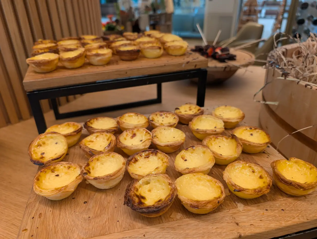 Na zona de doçaria do EVO Brunch, a atração é irresistível. Há um pouco de tudo. Granola saudável, morangos, mini pastéis de nata, waffles, mini panquecas, quadrados de bolo de chocolate, para acompanhar com compotas e toppings vários.