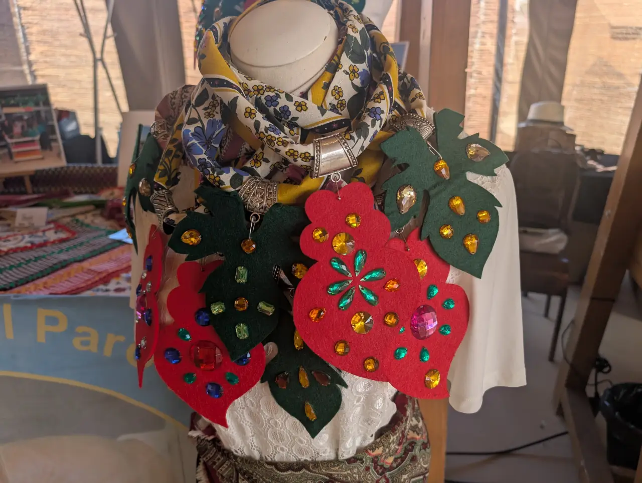 Isabel Raposo, do Centro de Dia de Vale da Pinta, destacou, para nosso interesse, pequenos trabalhos manuais criados pelos idosos da instituição: pingentes em feltro, naperons com bolsos coloridos e peças decorativas: “Eles ajudam a coser e a colar as pedrinhas. Isto é uma forma de manter os nossos utentes ativos e de mostrar que ainda têm muito para dar”.