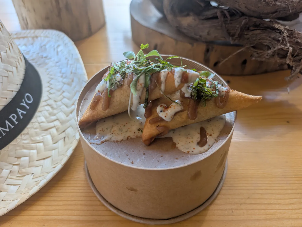 Com Tiago Emanuel Santos, a experiência foi picante, como seria de esperar de qualquer boa chamuça. “Nós olhamos para a cozinha sem etiquetas”, explicou. “As chamuças, por exemplo, que todos associam à Índia, têm origem nos pastéis de massa tenra que os portugueses levaram para lá. É tudo uma questão de olhar cultural”.