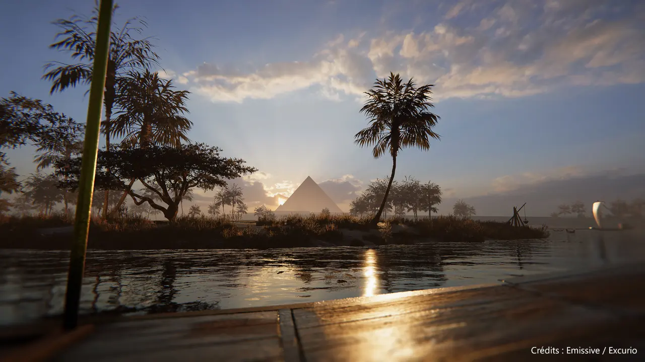 A própria experiência transporta o visitante para a monumentalidade do planalto de Gizé, abrindo portas que, na realidade, permanecem fechadas. O percurso virtual atravessa câmaras vedadas ao público e recua milénios até ao coração do Antigo Egito, numa reconstrução que nasce de estudos pormenorizados conduzidos por equipas de artistas 3D e egiptólogos internacionais. Maxence Fournier, diretor artístico da Emissive, descreve o trabalho visual como uma leitura paralela ao guião, onde luz, cor e atmosfera moldam, em conjunto, o tom emocional do percurso. O processo criativo arrancou com desenhos e composições em 2D, evoluindo para modelos tridimensionais iniciais posteriormente desenvolvidos pelas equipas técnicas. Uma das partes mais estimulantes do trabalho foi explorar o lado mais onírico associado aos mitos da pirâmide de Quéops, usando a realidade virtual para reforçar a sensação de descoberta. A prioridade foi garantir coerência visual total, assegurando que cada cena, independentemente da intensidade dramática, mantinha o mesmo rigor e detalhe. Fournier referia um certo orgulho em integrar um projecto pioneiro que propõe uma nova forma de contacto com o Egito antigo.