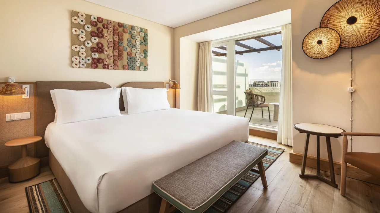 O hotel dispõe de 257 quartos e 21 suites, distribuídos por seis tipologias, com interiores inspirados na herança algarvia e na paleta cromática da região, onde predominam tons de verde, azul, areia e terracota. Os espaços privilegiam materiais e referências locais, aliando funcionalidade e conforto, com soluções tecnológicas orientadas para a conectividade e a conveniência dos hóspedes.