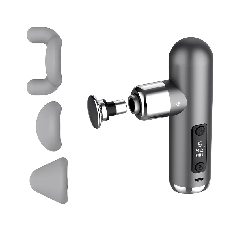 A Pistola de Massagem chega com a ambição de aliviar o corpo quando este começa a protestar. A ergonomia foi pensada para caber facilmente na mão, e o tamanho compacto permite levá-la de um lado para o outro sem esforço. A estrutura assenta em seis níveis de intensidade e quatro cabeças amovíveis, cada uma criada para responder a zonas musculares distintas: das superfícies planas do peitoral aos músculos maiores das pernas e das costas, passando pelos pontos mais sensíveis das mãos e dos pés, ou pelas áreas mais teimosas como trapézios e tornozelos. Junta-se o modo de aquecimento, com três temperaturas sinalizadas no ecrã LCD, que ajuda a preparar o músculo antes da massagem. A autonomia aproxima-se das cinco horas e o carregamento USB-C facilita o uso entre casa, escritório e ginásio. A ideia é oferecer um alívio imediato quando o corpo pede descanso.