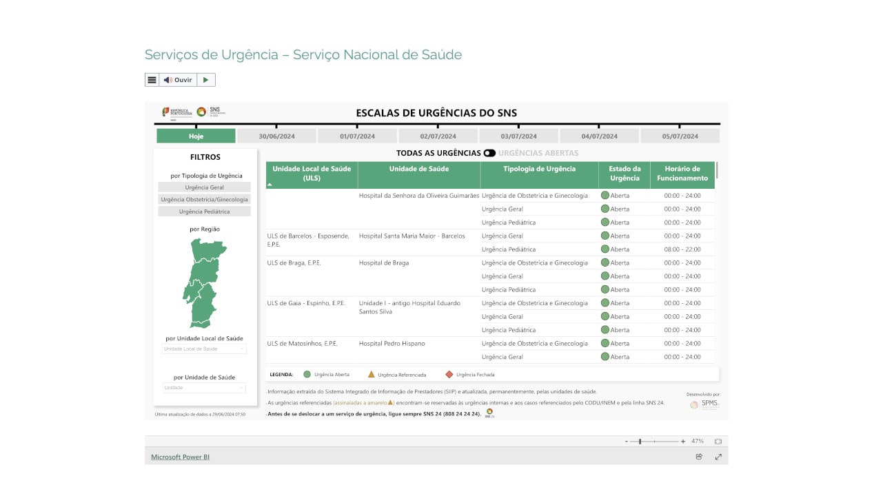 Ficou disponível, no passado dia 25 de junho, um mapa interativo a partir do qual podem consultar os serviços de urgência disponíveis, bem como os respetivos horários.