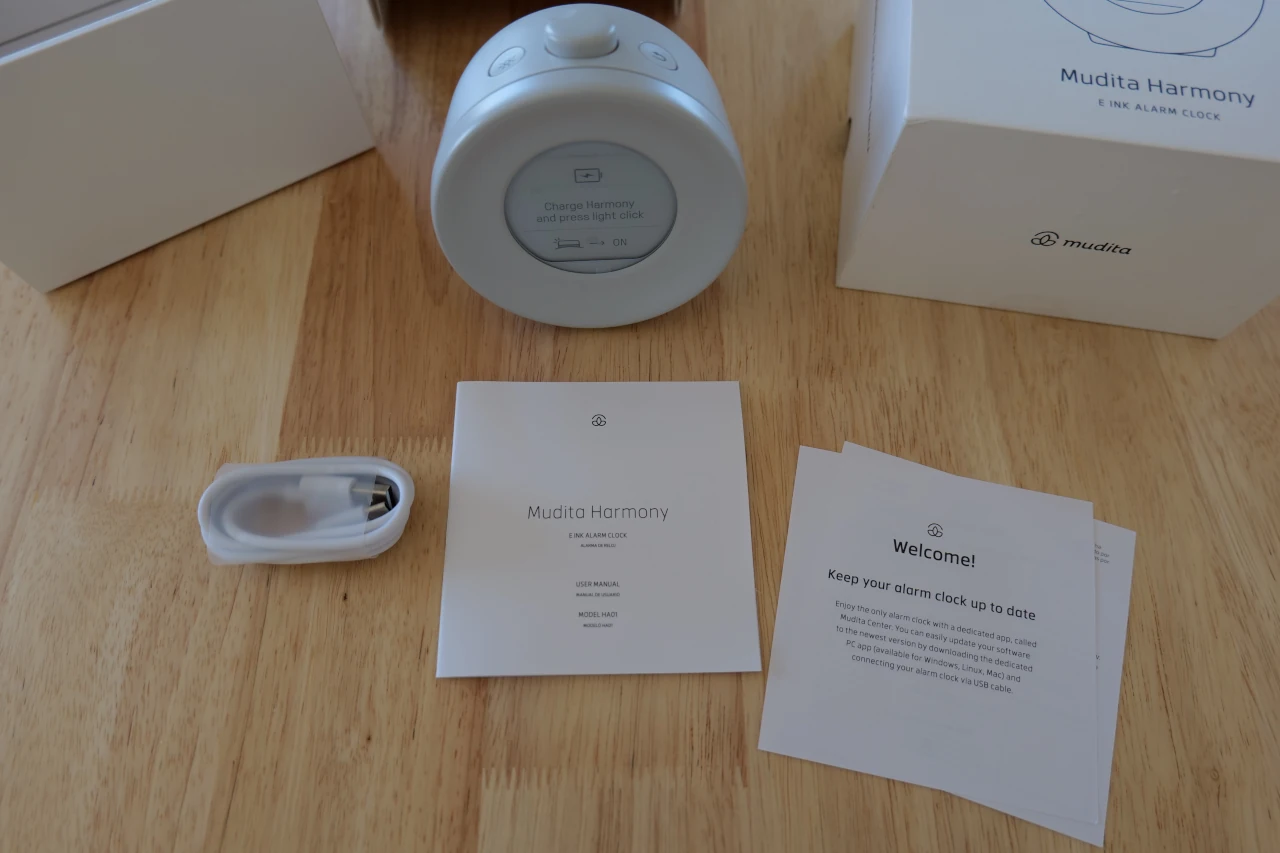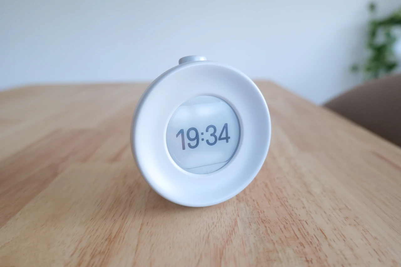 Ao receber o Mudita Harmony 2 em casa, a primeira impressão foi imediata: um despertador de mesa com um design extremamente elegante, de formato redondo, com um ecrã também redondo na sua zona frontal.
