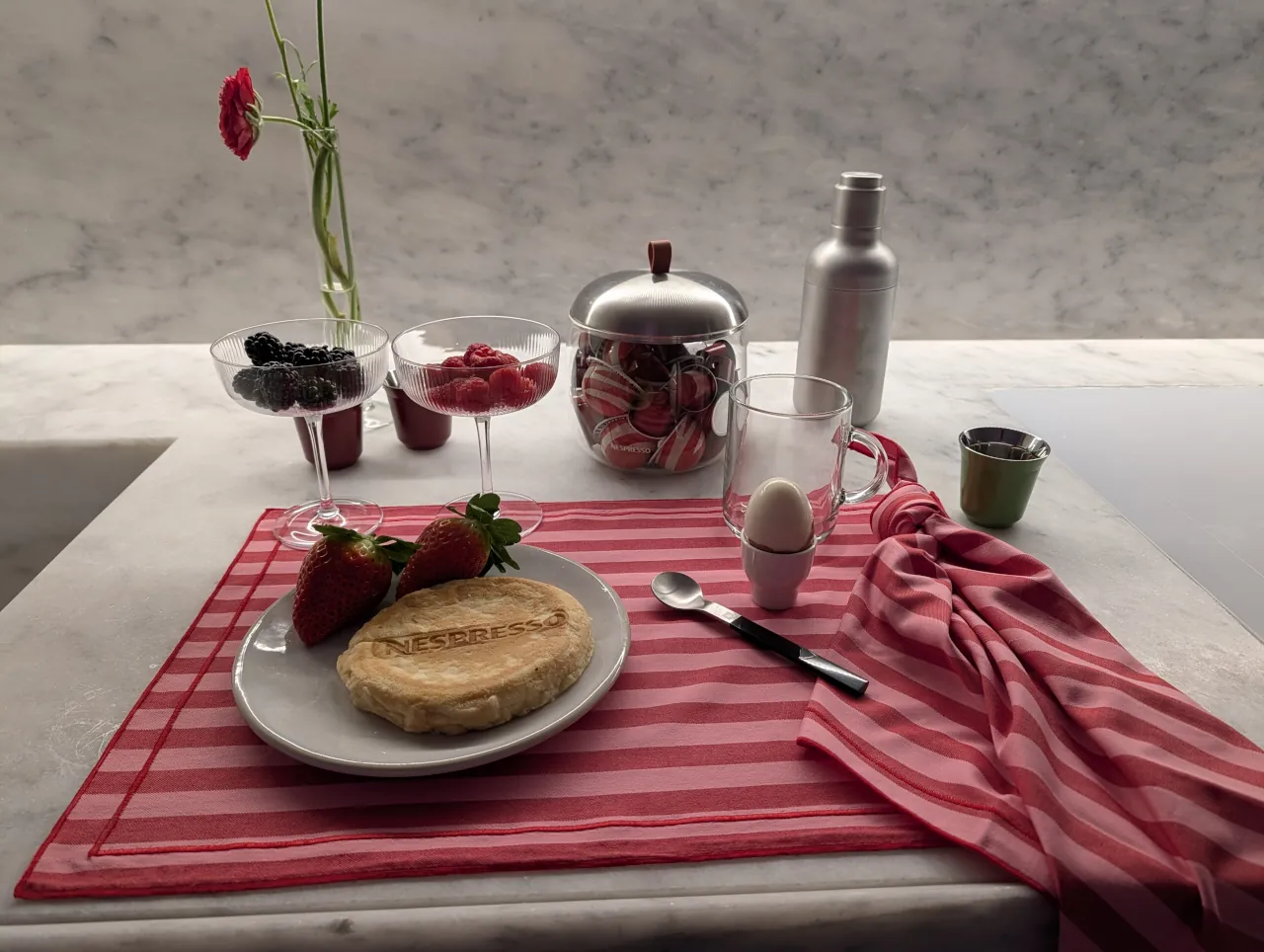 A coleção Nespresso x Torres Novas é composta por guardanapos e individuais de mesa de tecido 100% algodão que utilizam o histórico de fabrico da Torres Novas, empresa com atividade centenária no setor têxtil nacional. O design das peças aposta numa paleta de cores que alterna entre o bege, o encarnado e o bordeaux, apresentando-se tanto em padrões de riscas como em versões lisas. Durante a apresentação, os responsáveis destacaram que todo o processo de confeção foi assegurado por mão-de-obra local, reforçando a ligação da marca suíça à indústria e cultura portuguesas.