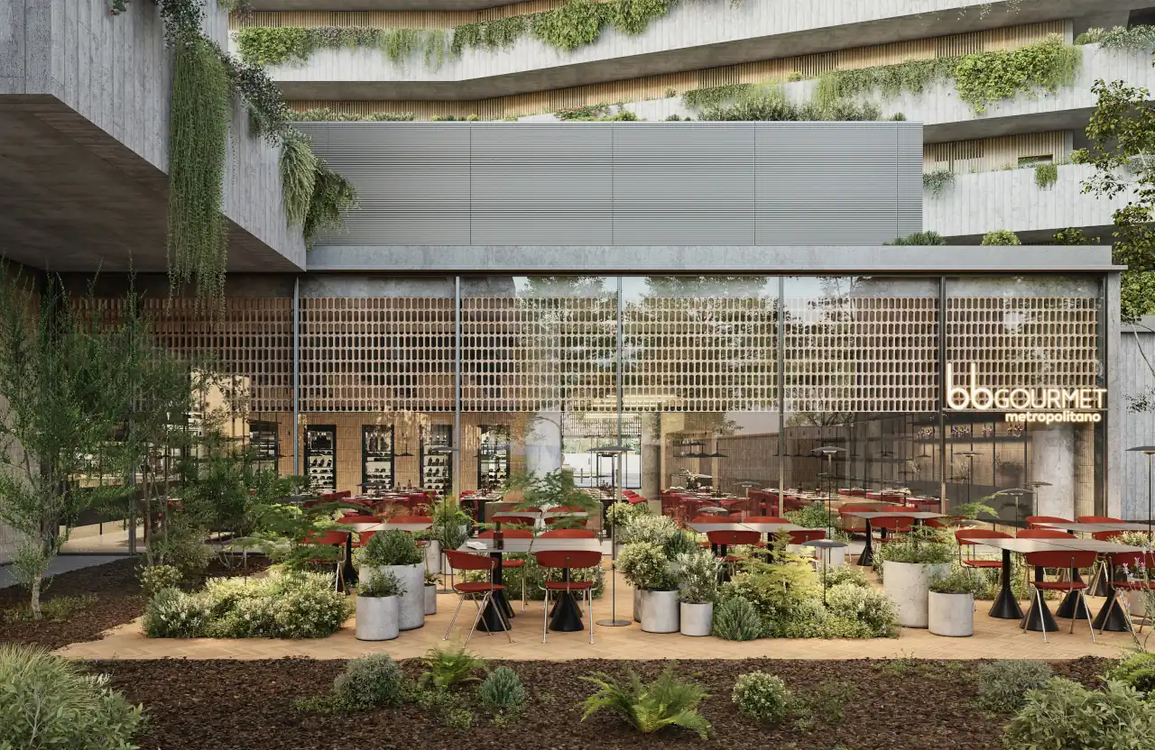 Na componente comercial, o complexo Oporto Metropolitano acolherá a maior superfície física da marca bbgourmet desenvolvida até à data. Com uma área superior a 2.100 m2 distribuída pelos pisos 0 e -1, o espaço implementa o conceito de “grocerant”, fundindo a dinâmica de mercearia com a de restaurante. O local oferecerá cerca de 3.000 opções, incluindo consumo no local, take-away e refeições prontas a finalizar no domicílio, uma solução descrita por Jorge Santos, líder do bbgourmet, como “cozinha sem cozinhar”. A infraestrutura integra também um ginásio da BFresh Fitness, aberto ao público, e um rooftop com cobertura vegetal para momentos de lazer e eventos corporativos.