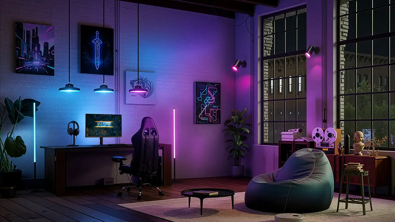 Com o AmbiScape, a Philips Evnia leva a iluminação sincronizada para além do monitor, estendendo a ação no ecrã às luzes inteligentes da divisão através de certificação Matter.