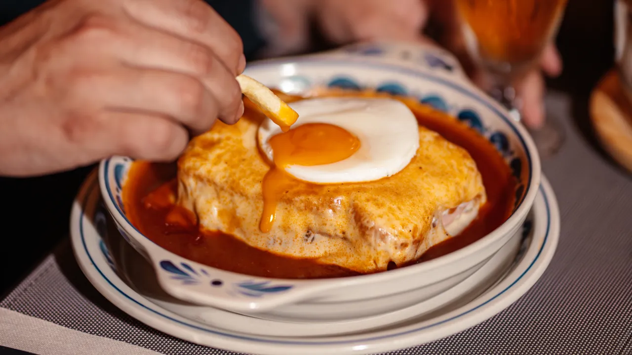 A carta mantém a Francesinha como prato central, fiel à receita que consolidou o nome da casa e que continua a colocá-la entre as mais reconhecidas do Porto. O menu inclui ainda pratos típicos portugueses, entre eles Pataniscas, Pica-pau e Pregos, servidos em prato ou em pão. As sobremesas seguem a vertente caseira, com opções como Mousse de dois chocolates e Bolo de bolacha com creme de ovos. O serviço é acompanhado por uma seleção de cervejas artesanais e cocktails.