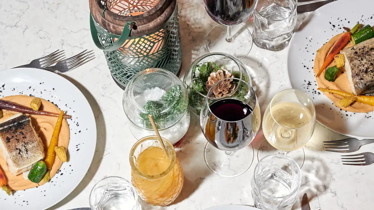 Para quem prefere uma refeição sem proteína animal, o menu vegetariano inclui opções completas, como Peixinho da horta em panko, Croquetes de feijão e cogumelos, Seitan à portuguesa e Portobello recheado com grão-de-bico, tofu, mozarela vegan, arroz de castanha e espargos. A sobremesa mantém o espírito natalício com fatia dourada e sorbet de framboesa.