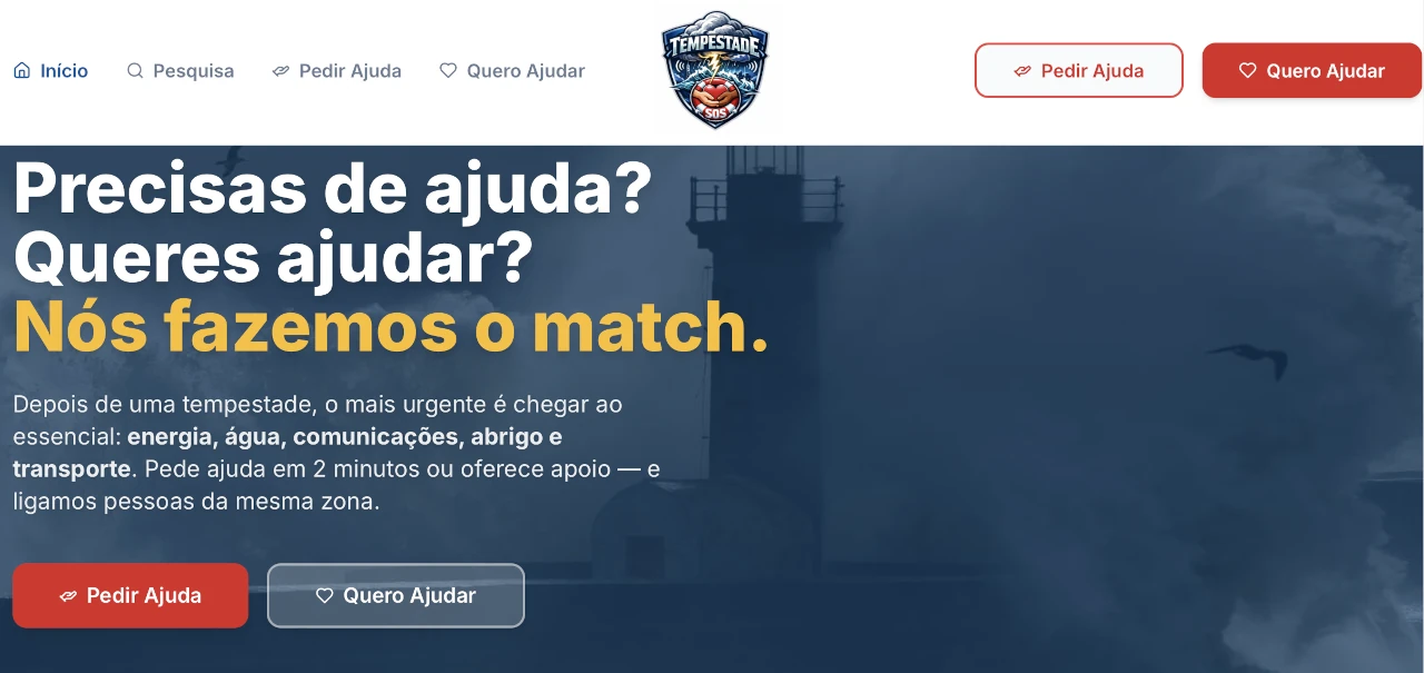 Desenvolvida em menos de uma hora, a TempestadeSOS nasceu da mobilização imediata de voluntários com experiência nas áreas da inteligência artificial e da comunicação, que decidiram agir perante a dimensão dos estragos provocados pela tempestade. O projeto assume-se como um espaço aberto a todos os que necessitam de apoio e a todos os que pretendem contribuir, abrangendo desde a disponibilização de bens essenciais e alojamento temporário até apoio logístico, técnico ou nas comunicações, bem como a cedência de geradores, combustíveis ou materiais de construção.