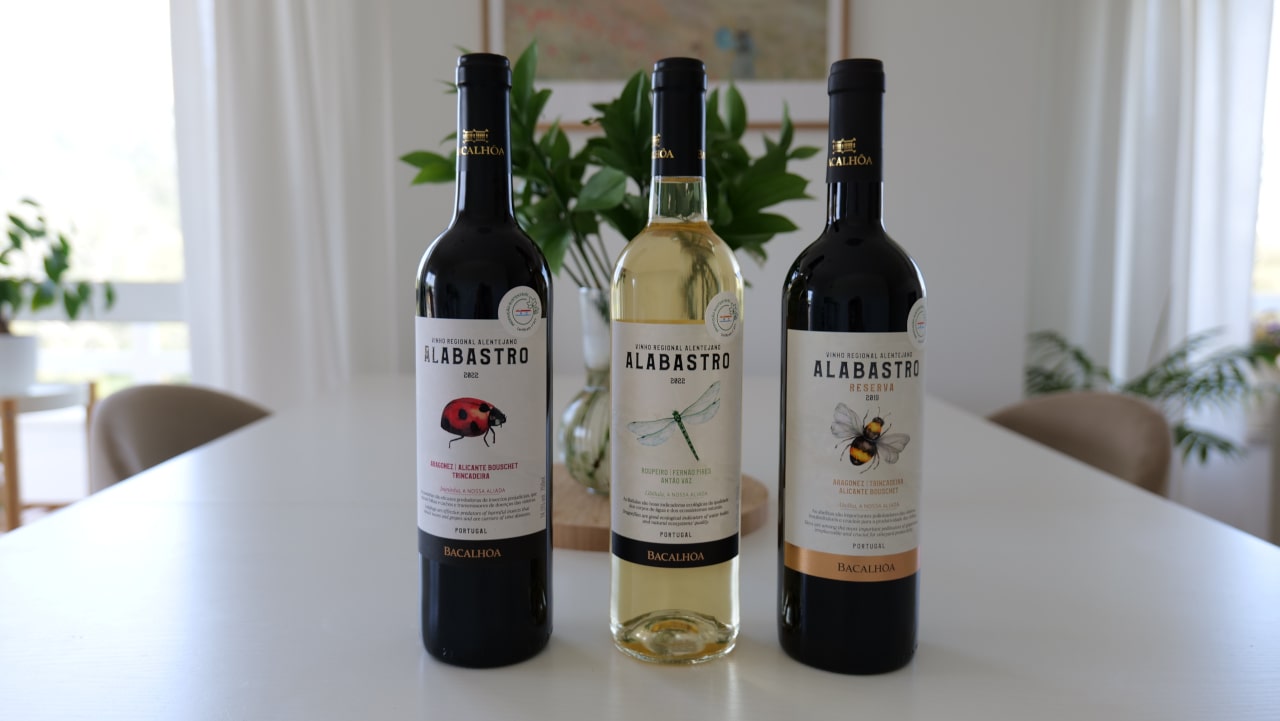Os vinhos Alabastro surgem agora com novos rótulos, alusivos à natureza e aos protagonistas que nela habitam, nomeadamente a abelha, em destaque no rótulo do vinho Albastro Tinto Reserva, sendo esta uma aliada na polinização da videira sustentável. No rótulo do vinho Branco surje a libelinha, que significa a qualidade e respeito pelos corpos de água e ecossistemas naturais, e no rótulo do vinho Tinto, a protagonista é a joaninha, que significa a eficácia no combate aos insetos prejudiciais à videira.